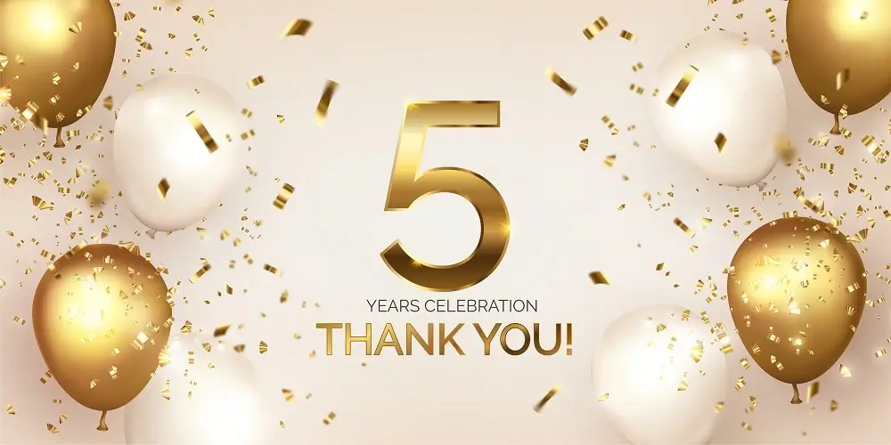 We are delighted to announce that our business has reached an exciting milestone. Our company is celebrating its fifth anniversary!