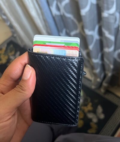 Tired of fumbling through your wallet to find which card you need? The card ejection mechanism allows you to eject up to 5 cards at a time, enabling you to grab your cards fast and easy.