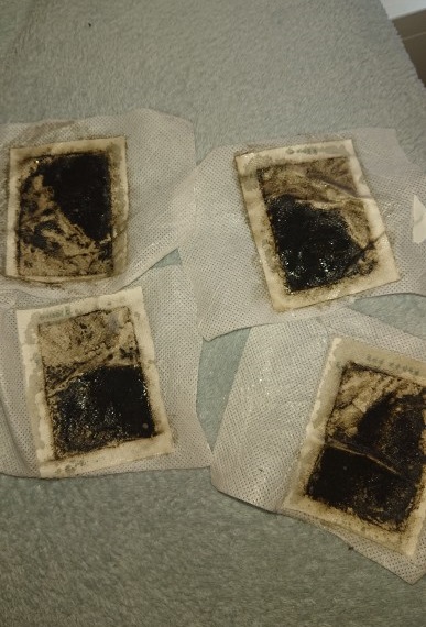 Detox foot pads leave a layer of black discharge on them after use. The discharge is made up of removed harmful toxins. The lower the toxins concentration in your body, the lesser discharge level you will find!