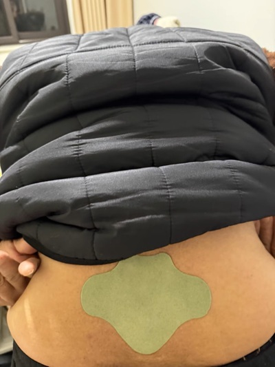 Step 2: Peel off the backing and place it on the lower back and lumbar spine.
