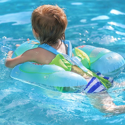 When kicking vigorously, the safety lock and harness system prevents slipping. Non-inflatable soft sponge chest part to protect the little belly.